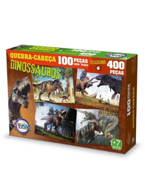 Jogo Quebra Cabeça Infantil Dinossauros 4 Em 1 Puzzle 400 Peças